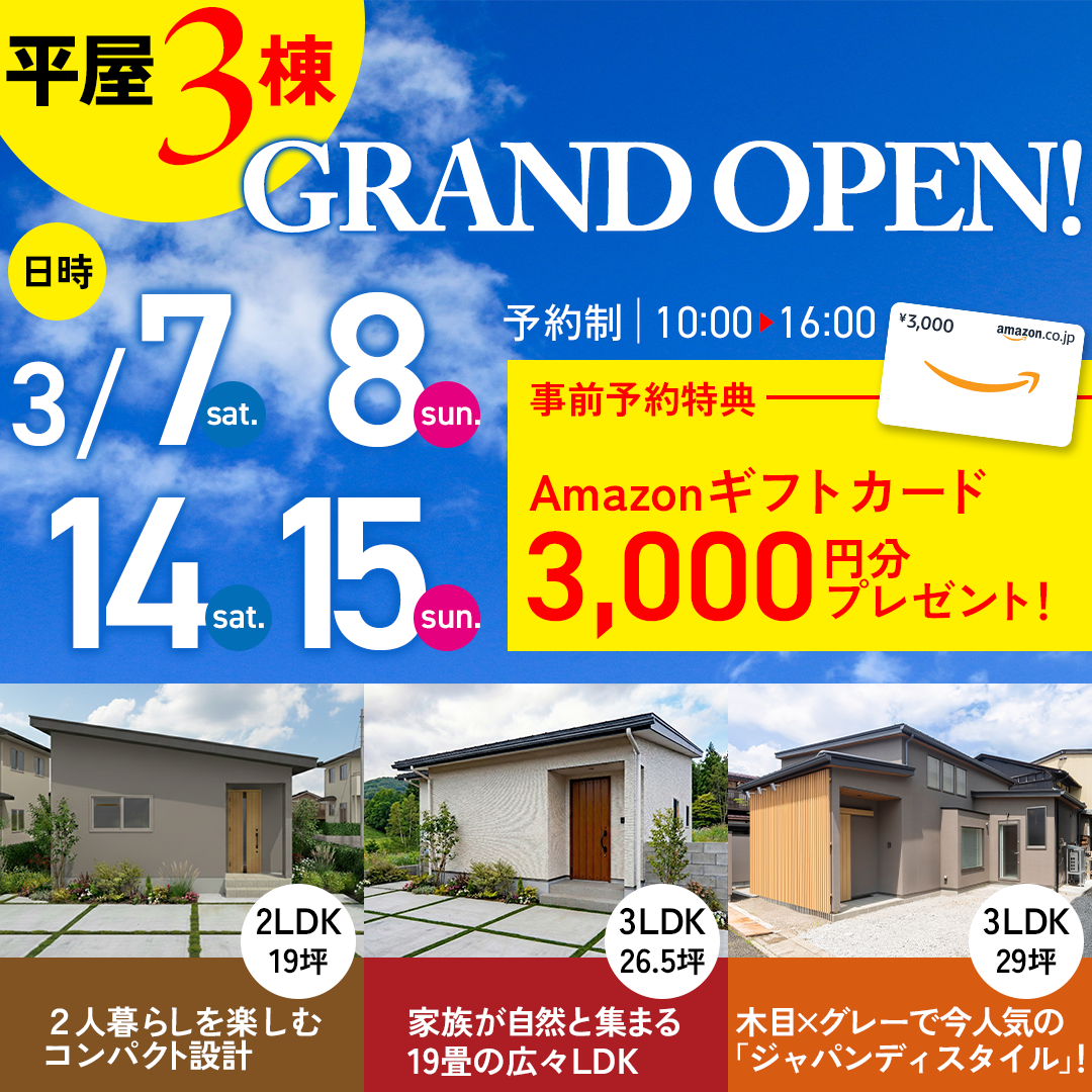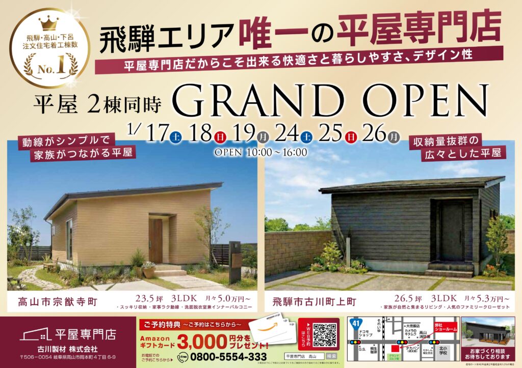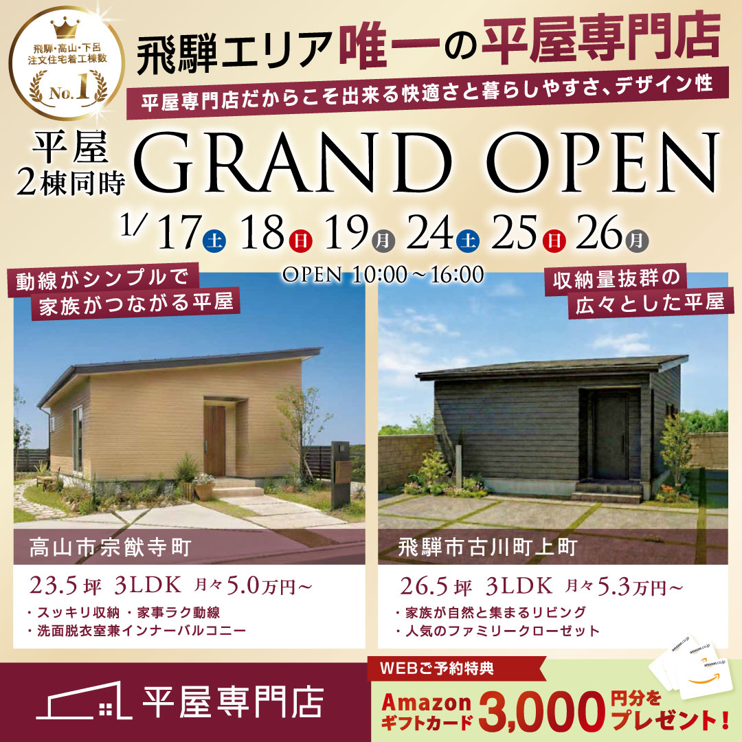 平屋2棟同時見学会開催!【宗猷寺町・古川町上町】
