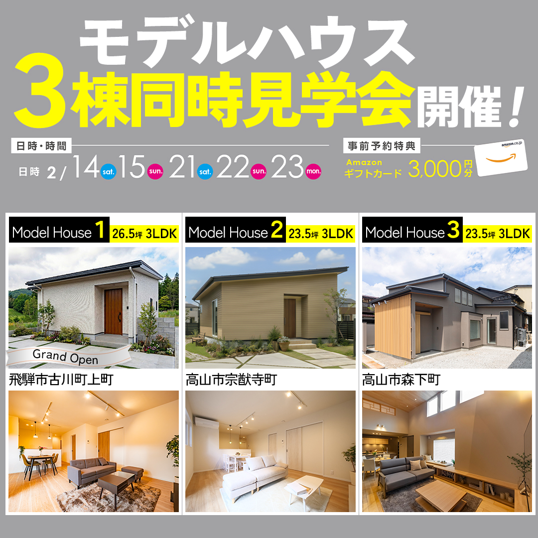 【平屋】3棟同時モデルハウス見学会 開催!