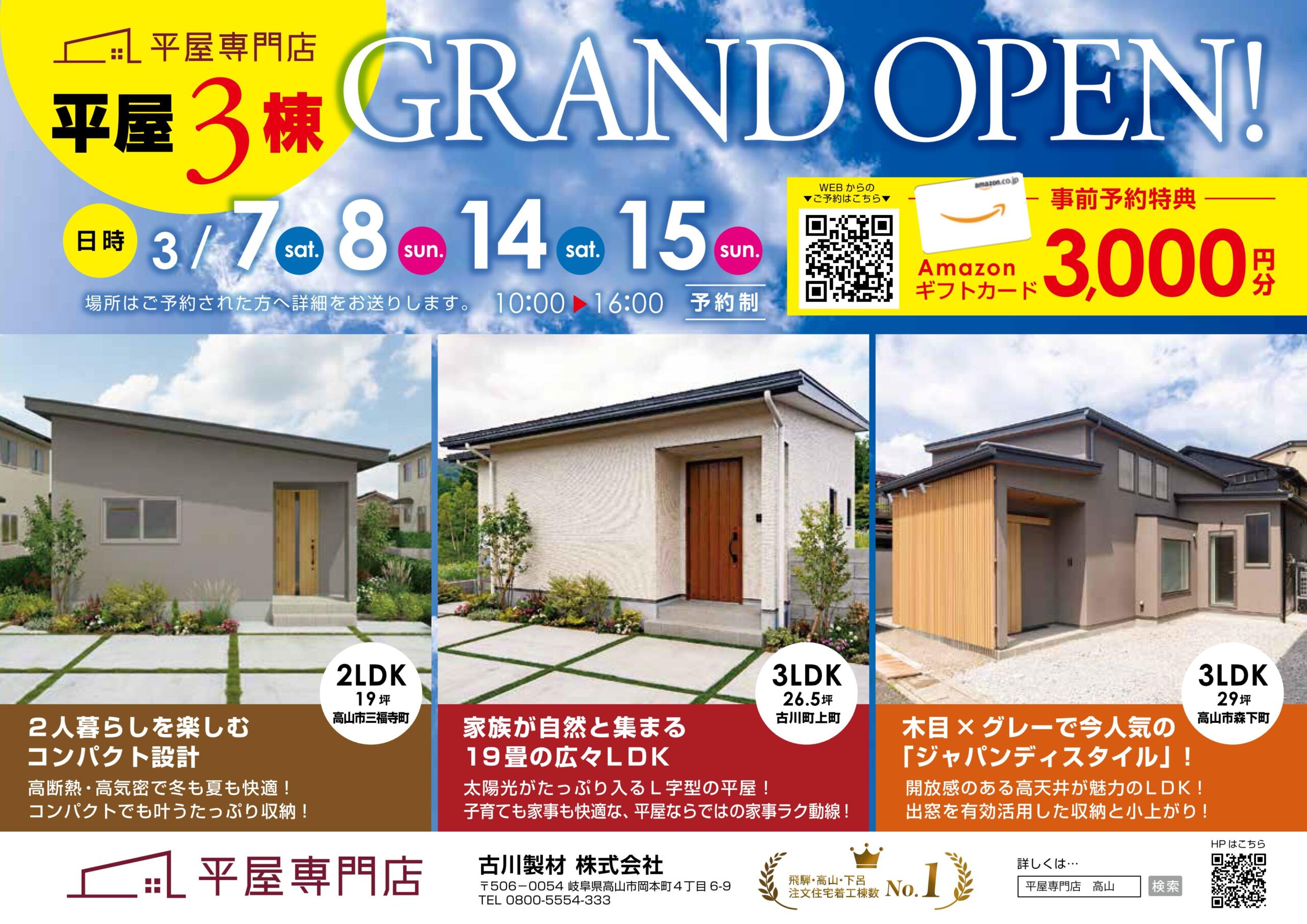 【平屋3棟】GRAND OPEN!【3/7.8,14.15】