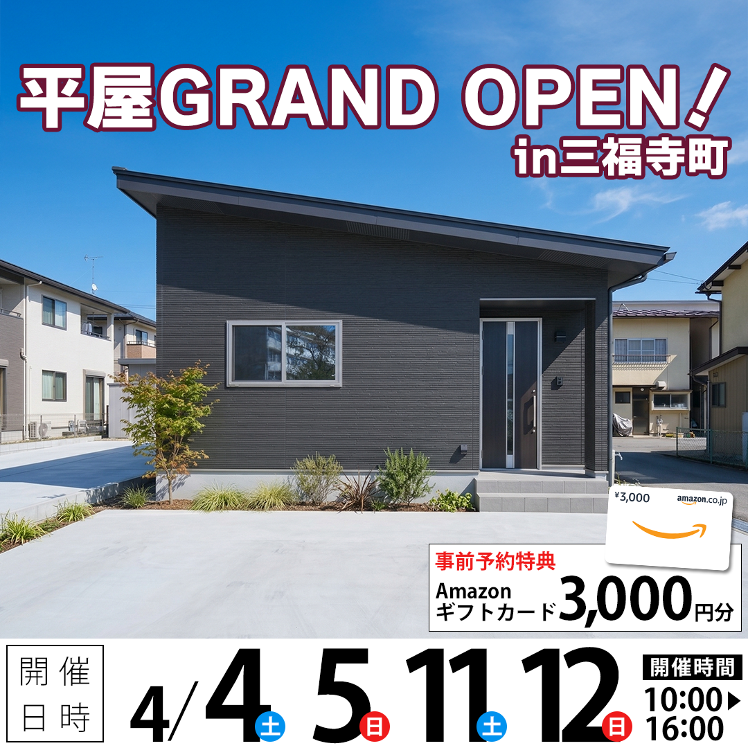 平屋のお家GRAND OPEN! in三福寺町