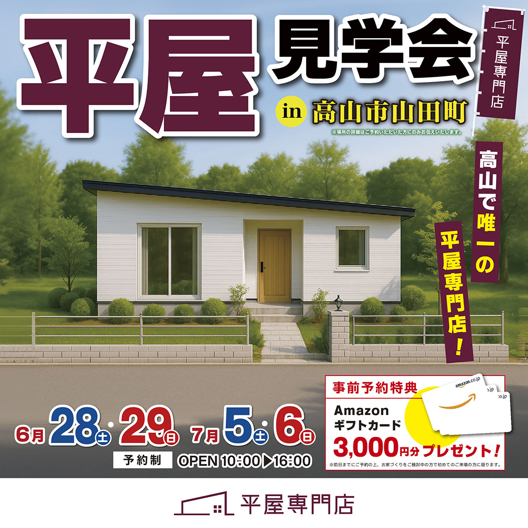 そんな方におすすめしたい、平屋専門店の手の届く高品質住宅が体感できる特別な見学会です。