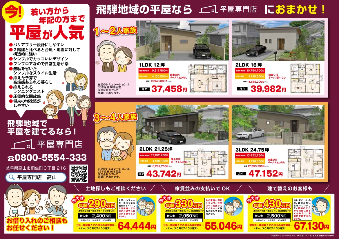 新築平屋モデルハウス販売中!【高山市宗猷寺町】